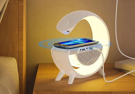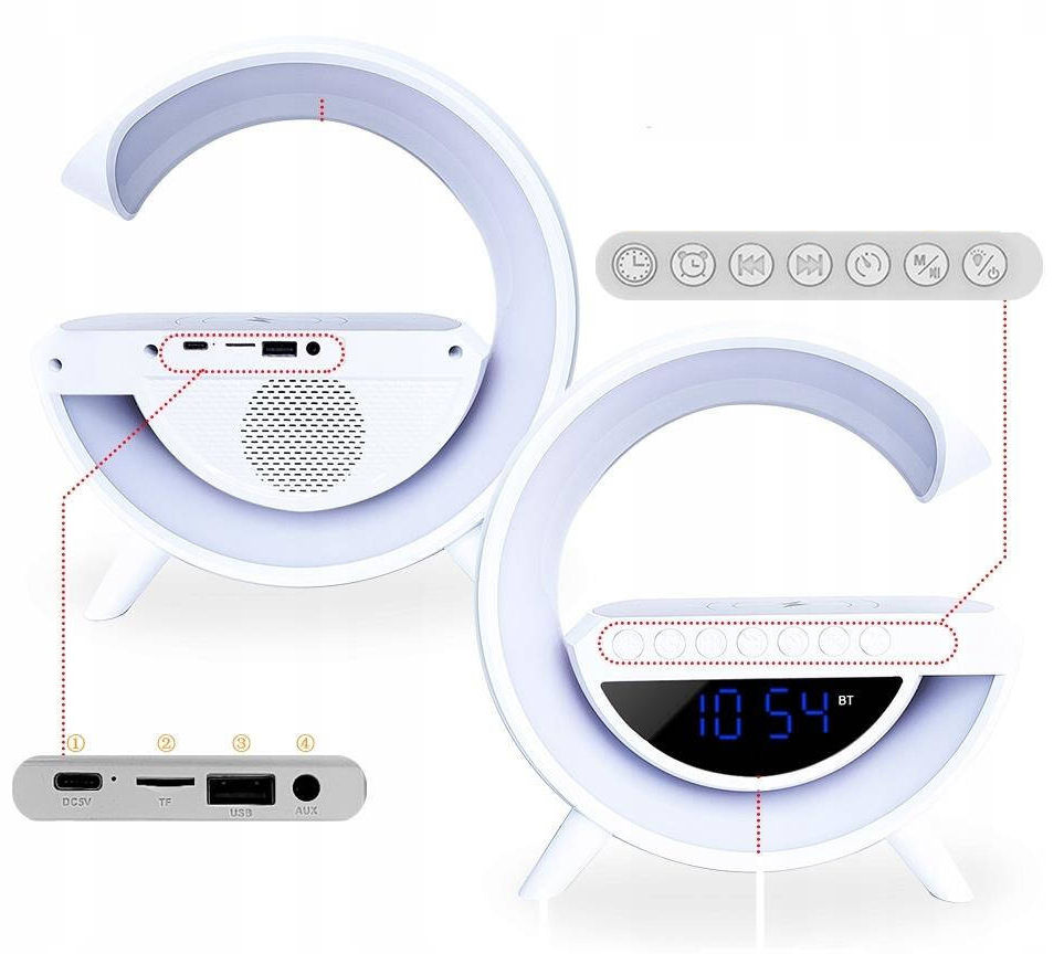 Multifunkční lampa s indukční QI nabíječkou, Bluetooth LED RGB reproduktorem a hodinami s funkcí budíku je univerzální lampa, která se bude dobře hodit do každodenního života.Bezdrátové nabíjení – nemusíte se bát otravných kabelů! Světlo je vybaveno funkcí bezdrátového nabíjení QI, díky které je nabíjení vašich zařízení extrémně jednoduché a pohodlné.