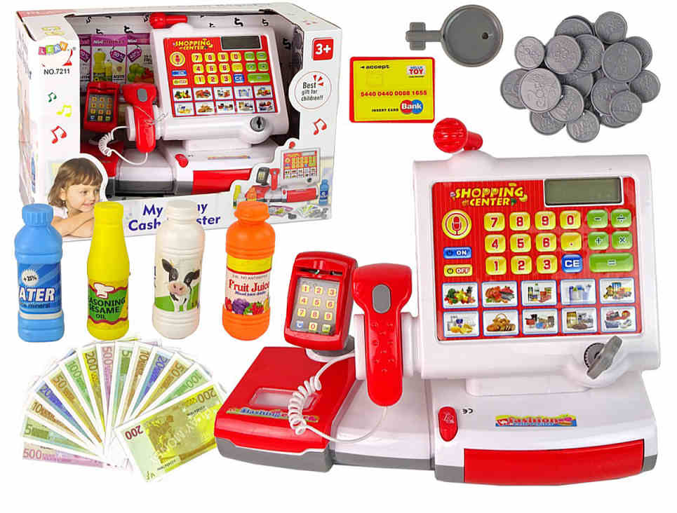- Funkce pokladny: Reálná LCD kalkulačka, dotykový panel s obrázky potravin, otevírací šuplík na peníze.