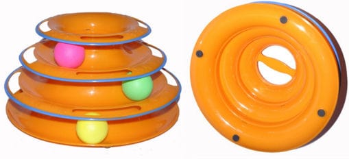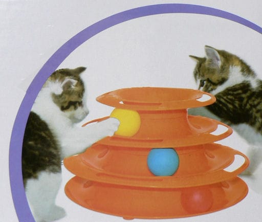 Hračka pro kočky - skládací věž se třemi úrovněmi, v každé úrovni je osazena koule, kterou kočka packou honí.Rozměr: 24x14cm