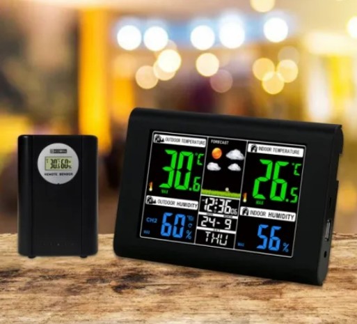 Tato moderní meteorologická stanice s přehledným barevným LCD displejem je perfektním řešením pro sledování povětrnostních podmínek v interiéru i exteriéru. Je vybavena bezdrátovým venkovním senzorem (s dosahem až 60 metrů) a zobrazuje aktuální teplotu, vlhkost, čas, datum a grafickou předpověď počasí. Je ideální pro použití v domácnosti, kanceláři, na zahradě, v garáži nebo altánu.