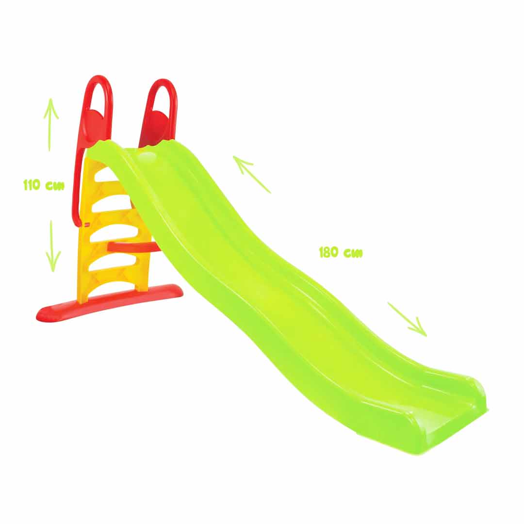 Velká zahradní skluzavka pro děti od 1.5 let . Hladká skluzná plocha s délkou 180 cm poskytuje skvělou zábavu . Ke skluzavce můžete připojit zahradní hadici a zvlhčovat kluznou plochu. Protiskluzové schůdky a stabilní konstrukce.Parametry: