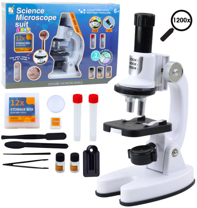 Vzdělávací mikroskop s LED osvětlením a trojnásobným zvětšením až 1200× je ideální volbou pro děti, které chtějí objevovat tajemství přírody a nahlédnout do fascinujícího mikrosvěta.
